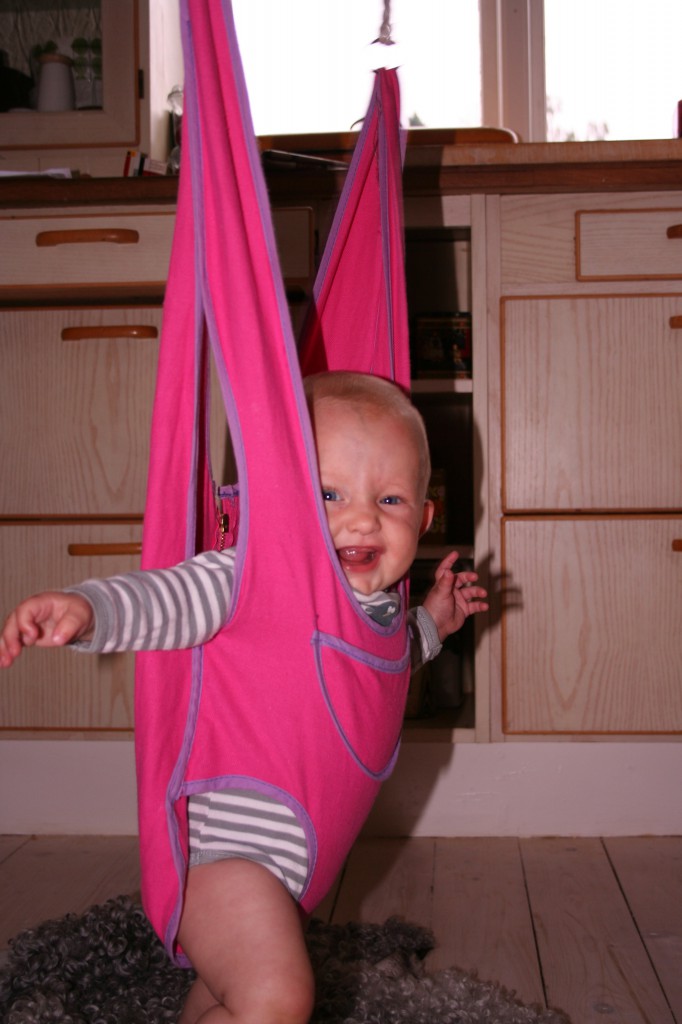 Och jo, hon gör det. I mycket god tid, dessutom. Sedan trevar sig de små fötterna ner mot golvet. Resårbotten står direkt på golvet, så det är precis lagom Ella-höjd.