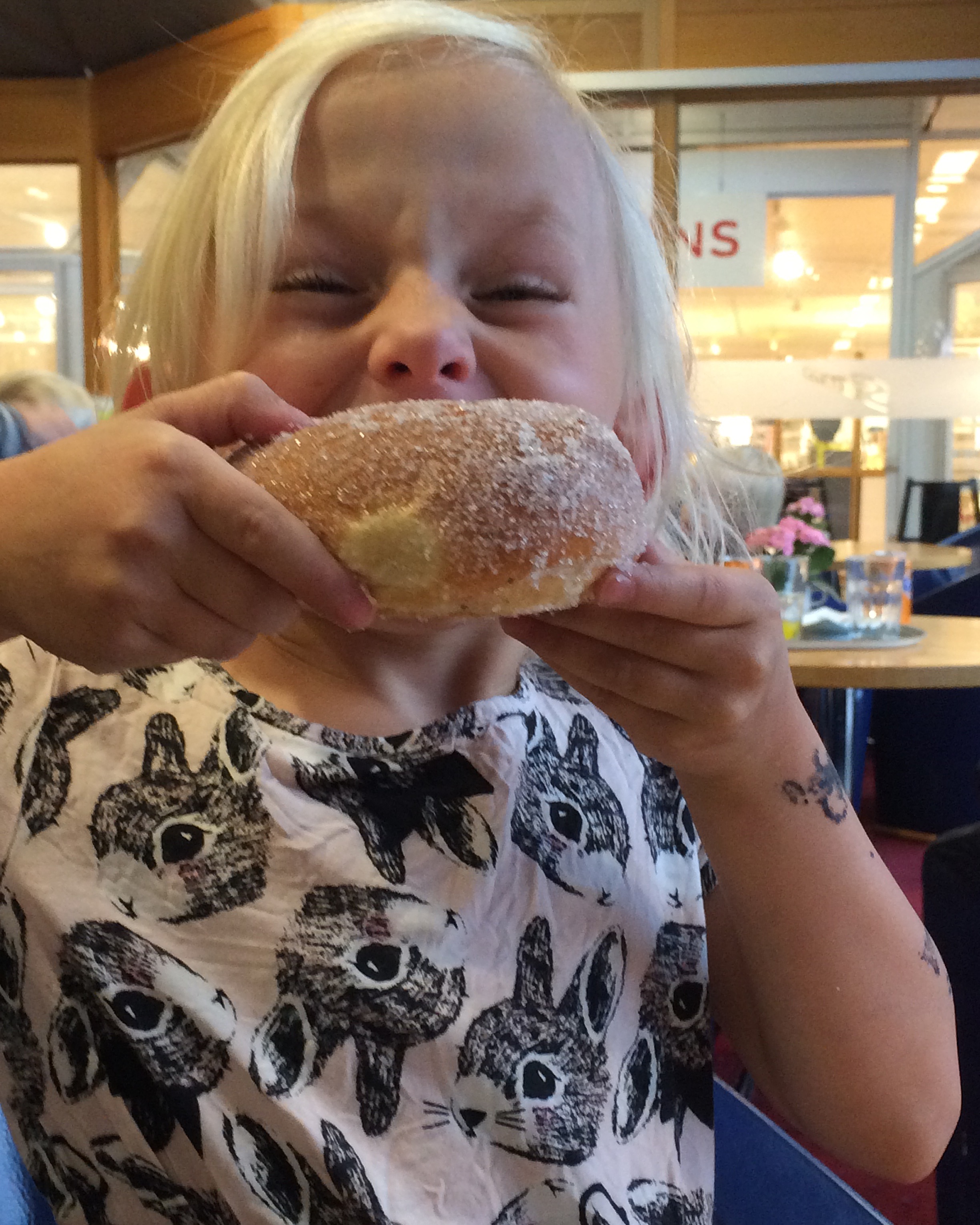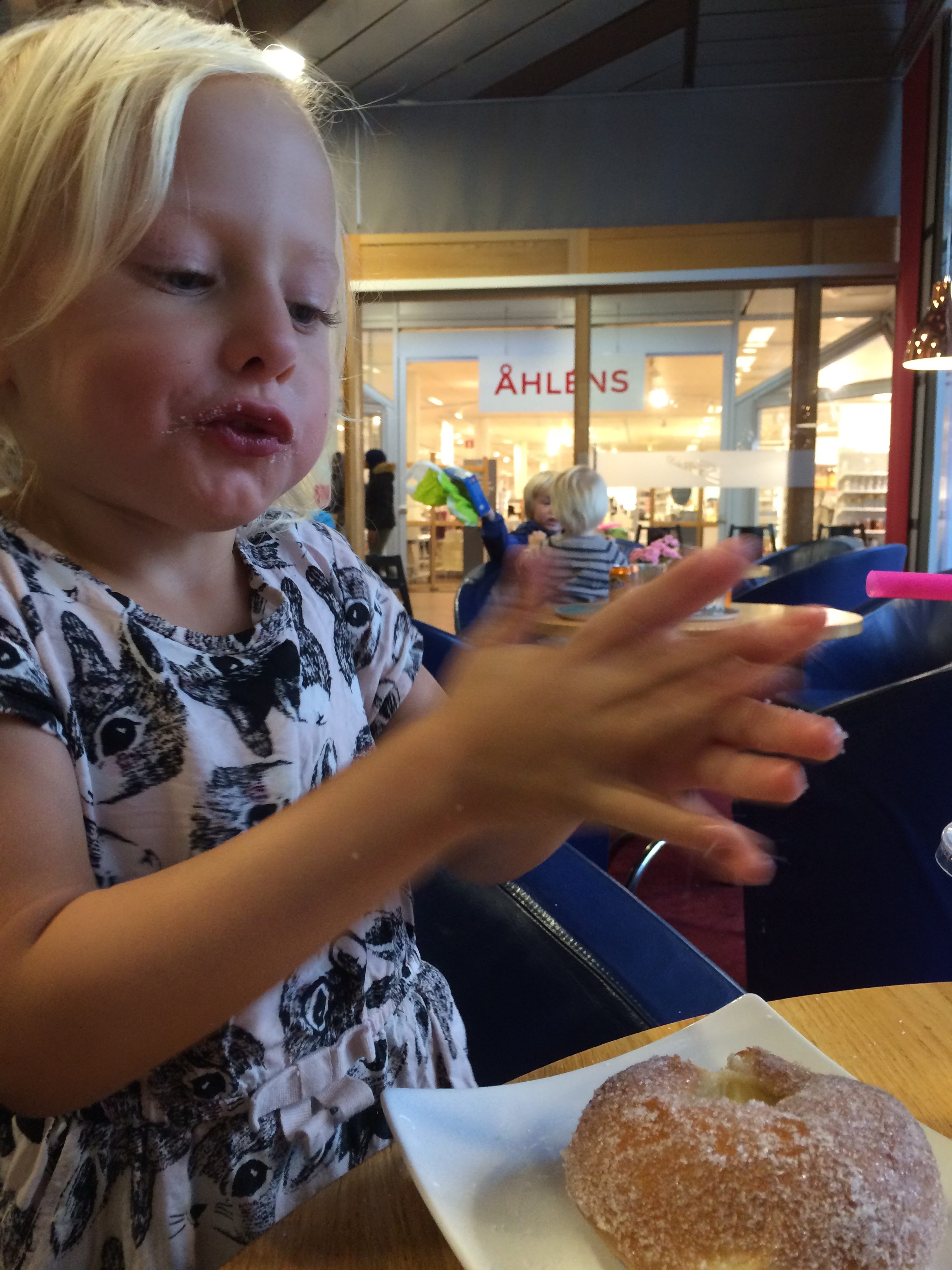 Just som vi satt igång ägg och sockervispet med elvispen knackade det på dörrposten. Där stod ytterligare en blond prinsessa, sötare än strösockret i vår skål.