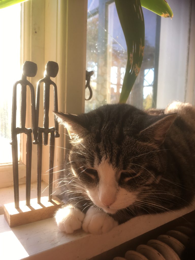 Hemma på fönsterbrädan njuter gammelkatten också av sol och värme…