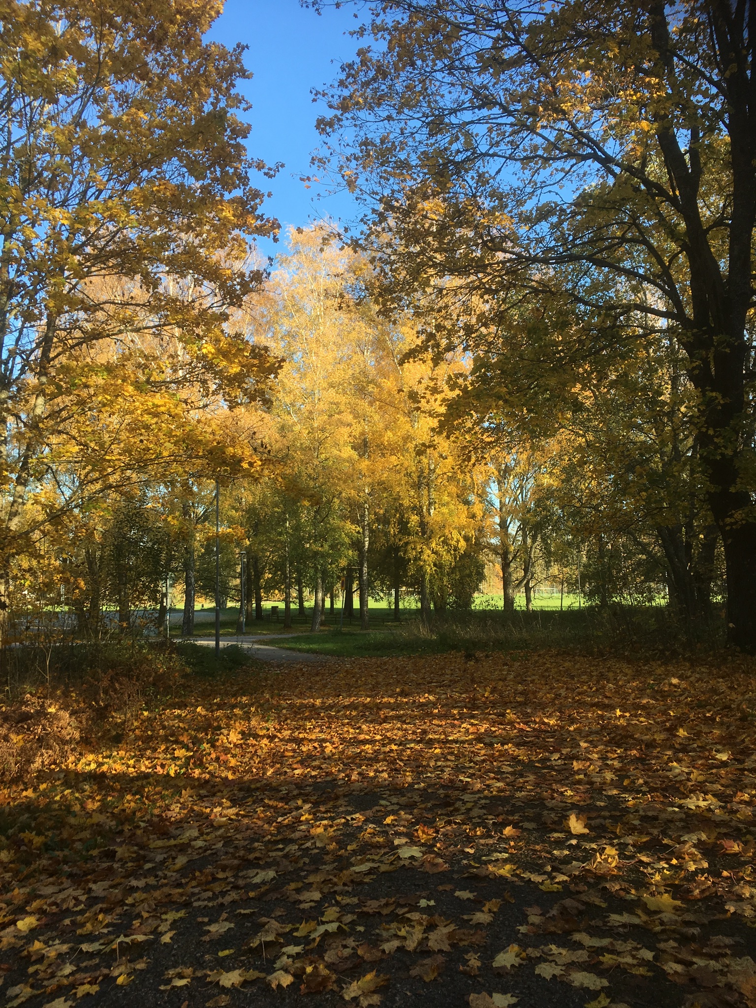 Likaså krattar jag bara löv när solen är närvarande… en sån där krispig höstdag med högt i tak.