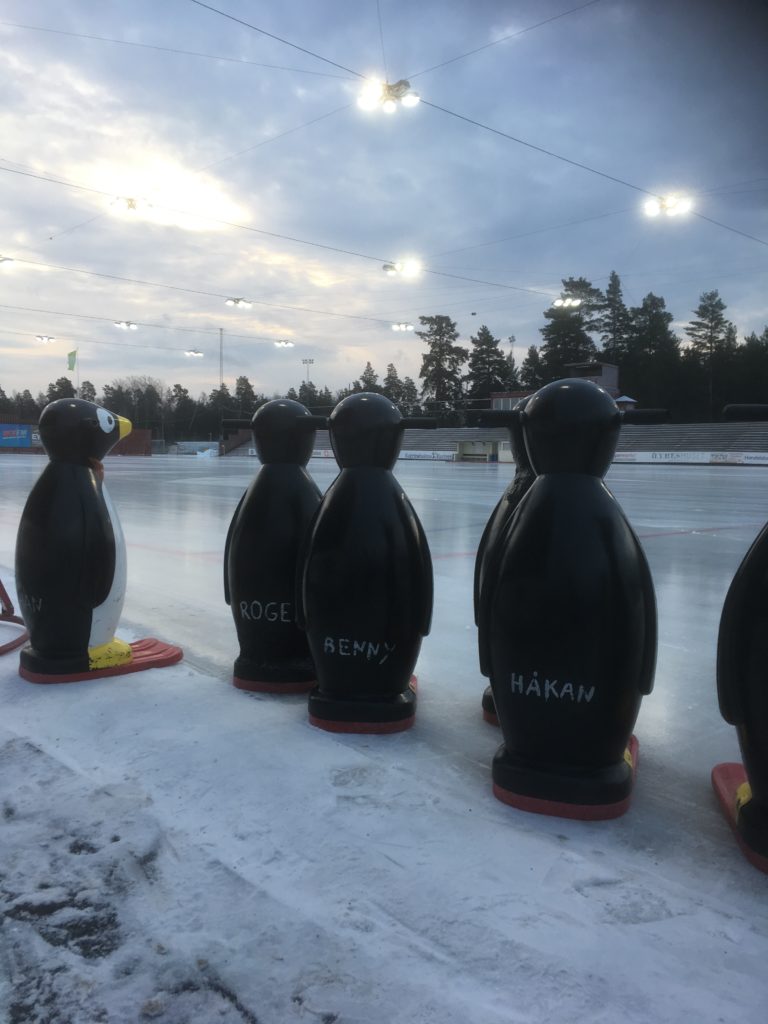 På väg till jobbet i morse såg jag detta sköna gäng stå och blicka ut över isen vid Backavallen