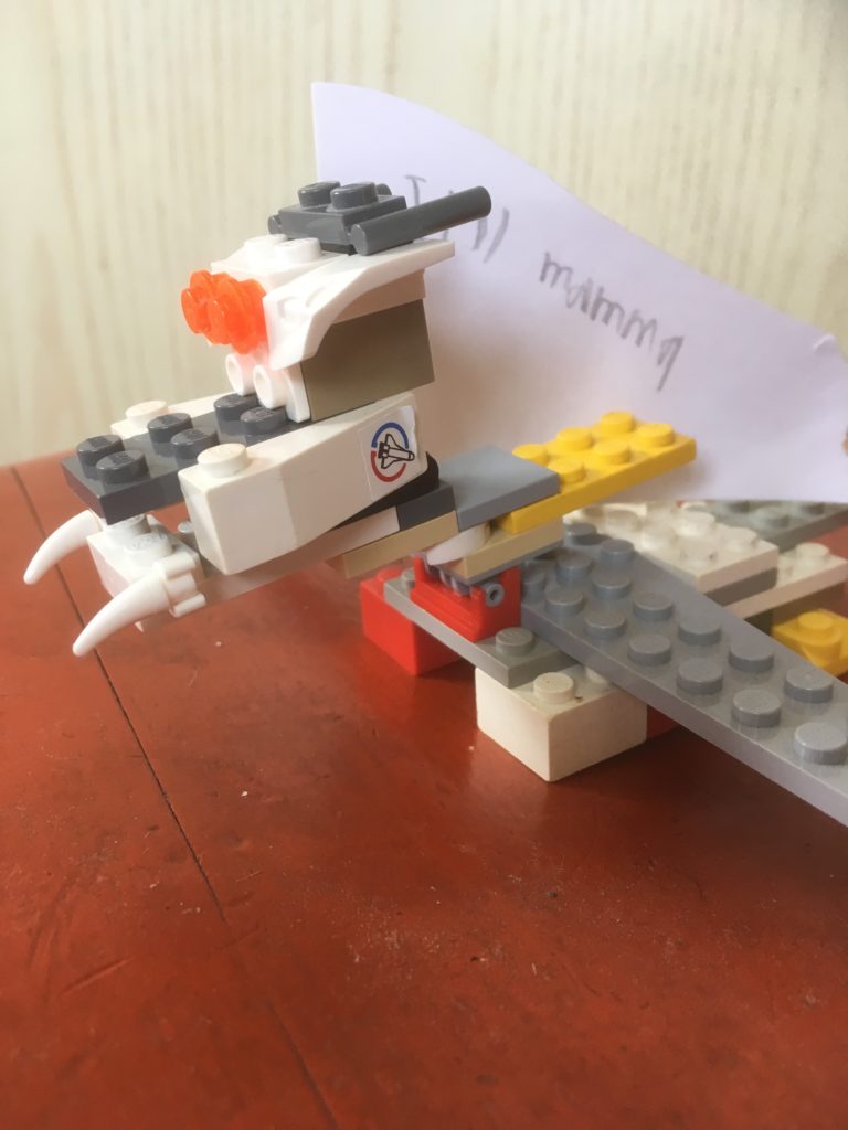 Lite senare, efter kvällsmaten kom han med ännu ett lego-verk.