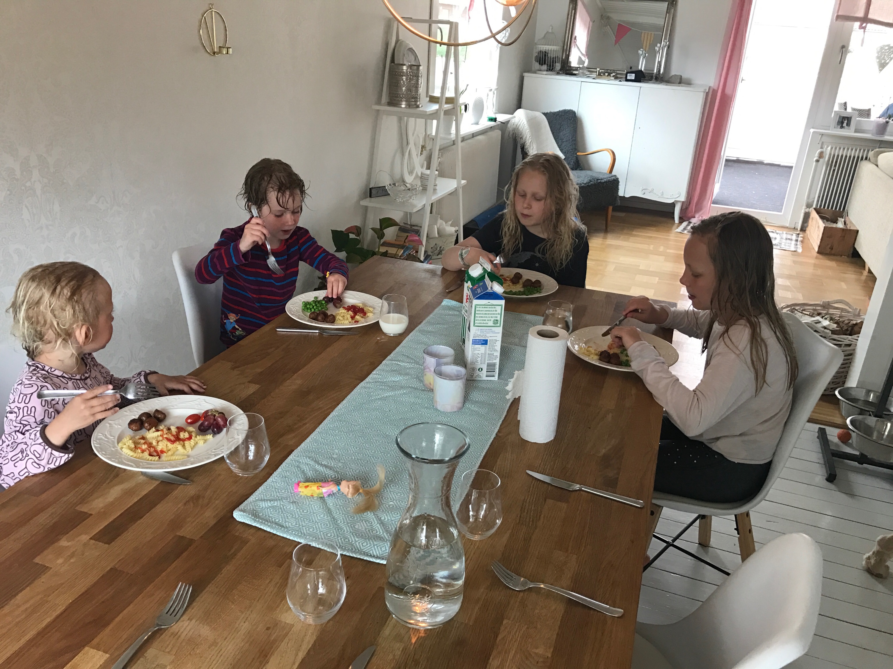 Sedan middag med flickan och stora kusiner från storstan. Pasta och köttbullar med KETCHUP!