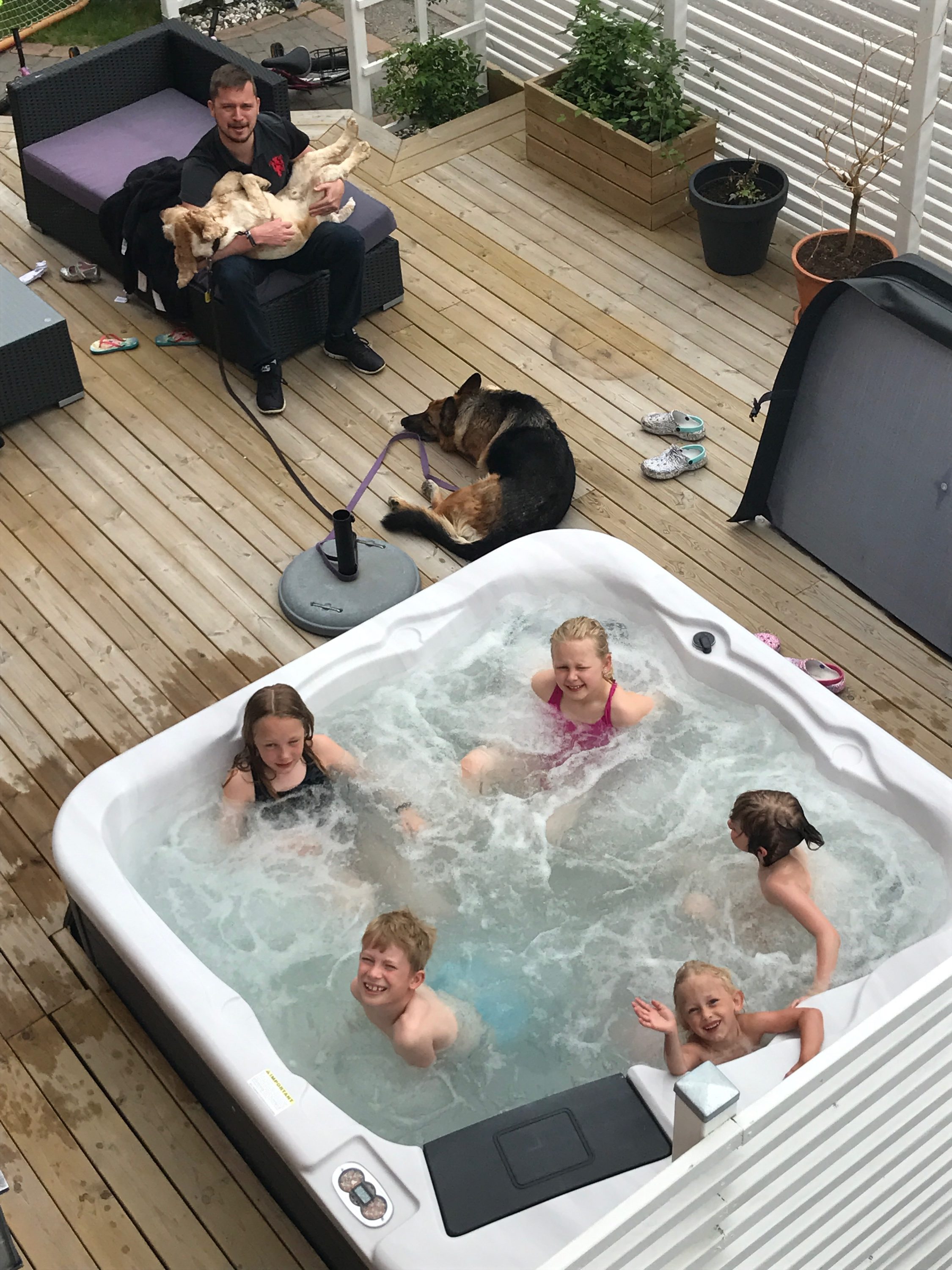 …och att en stund senare hamna i hennes pool med fler kvartersungar…