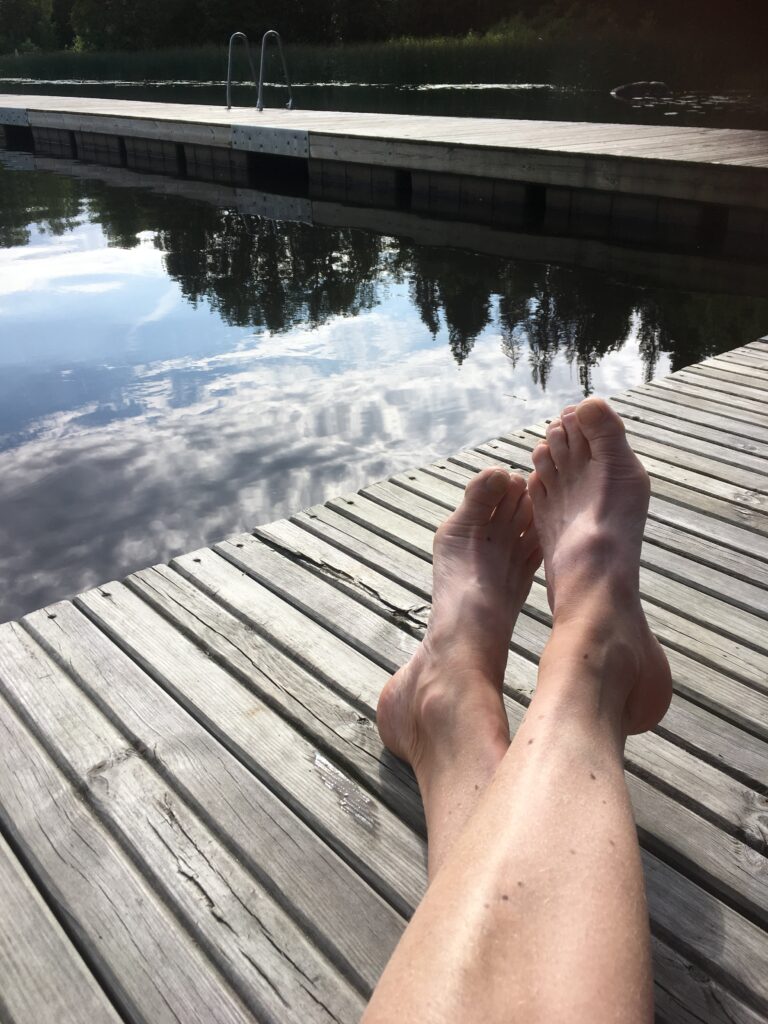 Tårna smakar det bruna, järnhaltiga vattnet. Sanden är som sammet. Fotmassage på riktigt, OCH balsam för knopp och kropp!