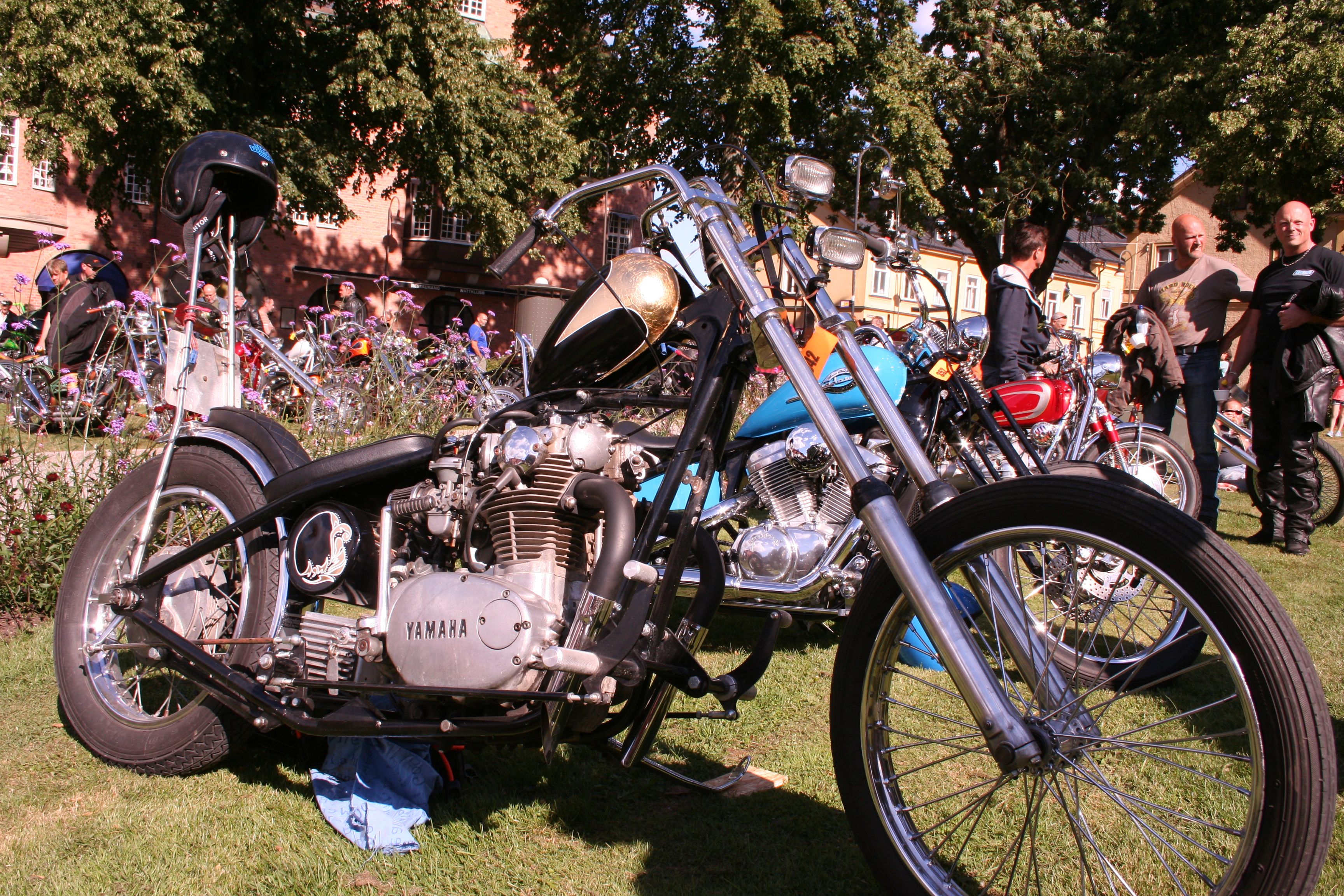 Sedan charmig och supertrevlig hoj-utställning i Strängnäs. Som vanligt! Ugglans park badade i krom, bikers, ryggdunkningar, kramar, prisutdelningar och sol.